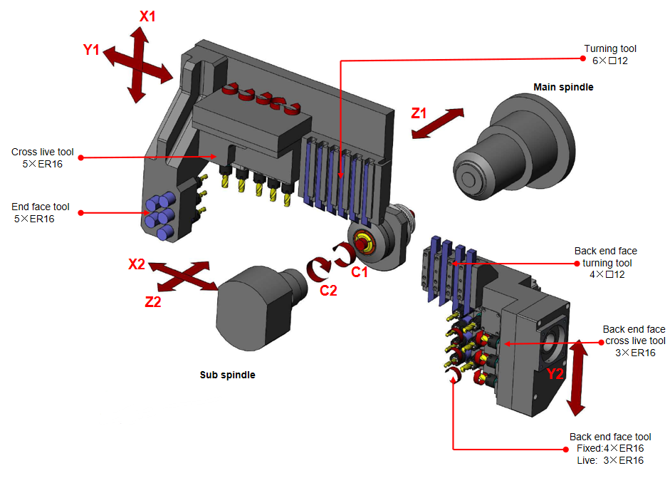| ⑤Cross live tool | Qty.×Model | 3×ER16 | 3×ER16 | ||