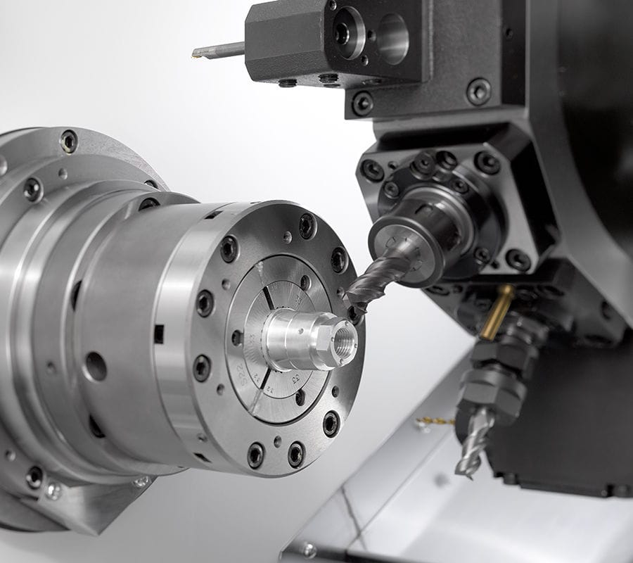 ●搭載12工位動力刀塔,Y軸、主軸及副軸,可在同一幾臺進行車、鉆、攻等復(fù)合加工功能,一次設(shè)定完成整個加工過程。